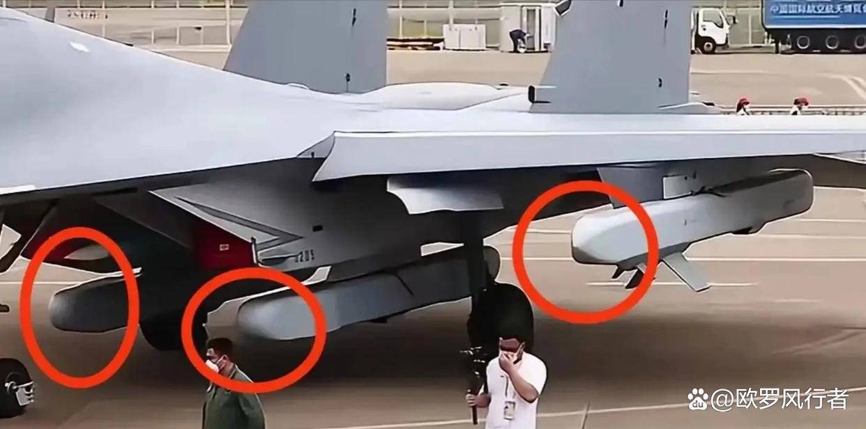 歼-16D的核心优势,源于其全方位升级的电子战系统。为适配电磁作战需求,该机拆除了机炮和红外搜索跟踪设备,机身22个武器挂点可搭载6个大功率电子战吊舱,数量超过美军EA-18G“咆哮者”的5个,且无需牺牲导弹挂载量。
