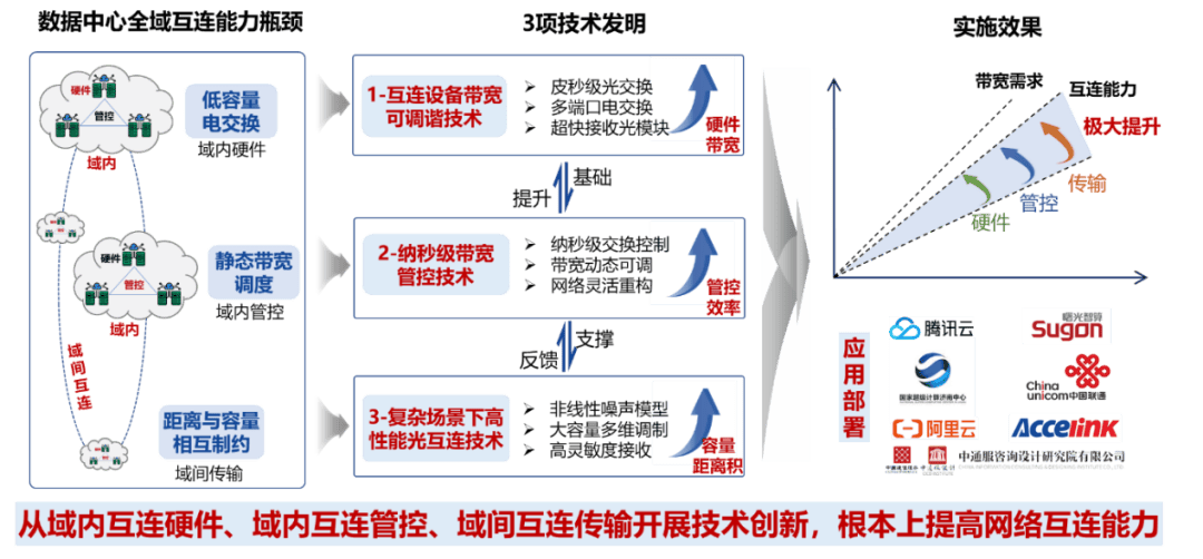 薛旭伟教授主持完成的“面向全域数据中心的光电混合互连关键技术及应用”项目成果荣获北京市科学技术奖技术发明奖二等奖。针对全域数据中心互连组网系统在网络规模、容量相互约束下的带宽资源使用效率提升难题,项目提出了可调谐硬件的纳秒级管控与高效互连技术,攻克了全域数据中心大规模高效组网这一业界难题。项目成果在腾讯云、联通云应用部署,推动全国一体化算力网建设,经济社会效益显著。