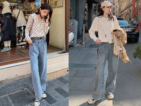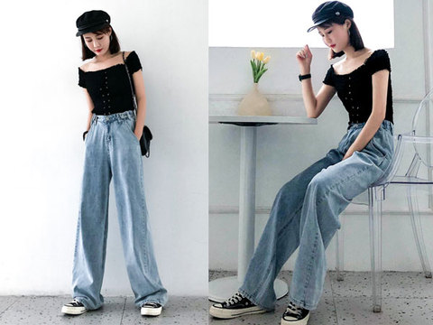 韩版高腰港风长款牛仔裤,宽松的阔腿裤型,对腿部有肉肉的宝宝真的是太友好了。高腰凹出完美的身材比例,更显高挑身材。搭配的话可以说是超省力了,随便一件毛衣、卫衣、衬衫都很OK,轻松打造出秋季慵懒的高级感,展现不一样的时尚风潮。