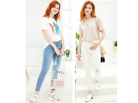 穿多了中规中矩的裤子,来条破洞牛仔裤吧,带给你不一样的视觉体验。小面积的破洞设计更显瘦哦,不仅不闷热反倒是更凉爽,而且个性十足,走到哪都是潮流所在。很贴合腰围的高腰设计,提臀收腹,尽显纤细腰肢。性感提臀的经典牛仔后贴袋,修饰臀型穿出大和腿。经典的牛仔搭配起来也是超省力的哦,简约的上衣就很OK,时髦有范儿。